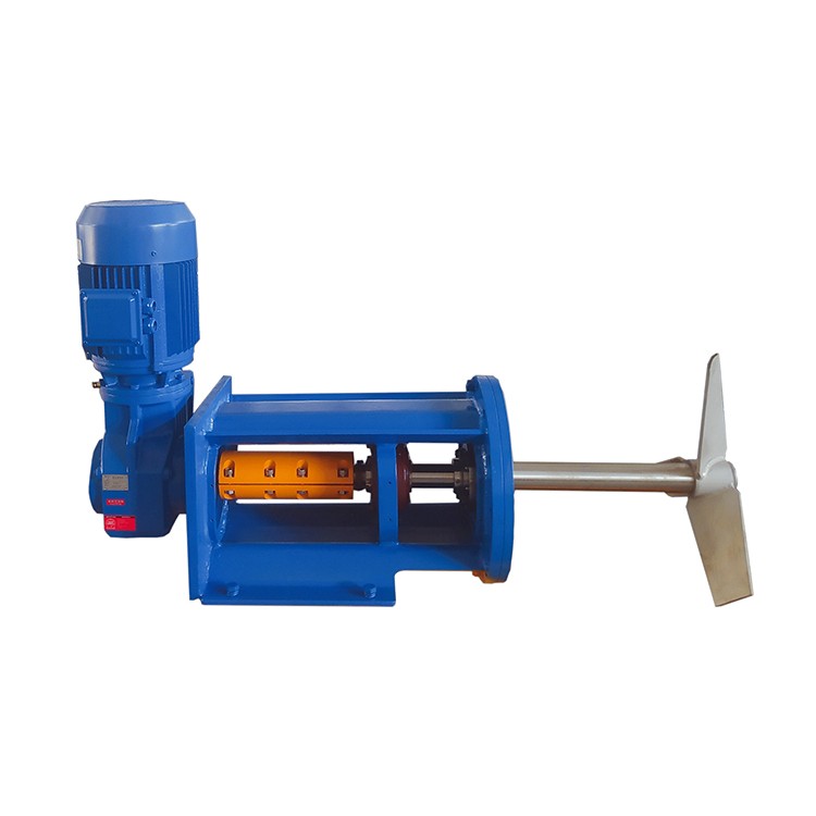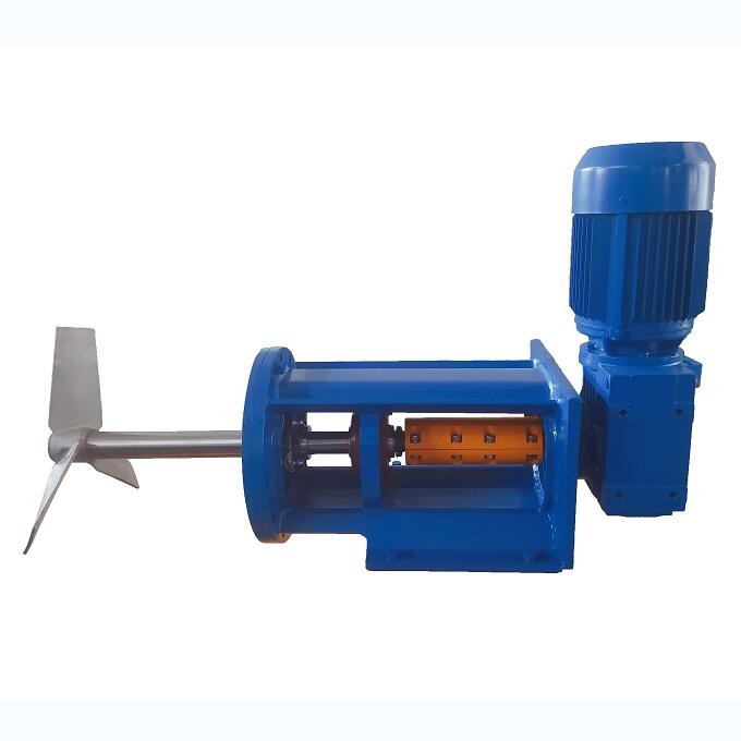 側(cè)入式脫硫塔攪拌機(又名側(cè)入式攪拌器)是將攪拌裝置安裝在設(shè)備筒體的側(cè)壁上的攪拌器。根據(jù)不同介質(zhì)的物理學(xué)性質(zhì)、容量、攪拌目的選擇相應(yīng)的攪拌器。一般選用三葉式推進器,因為它循環(huán)能力強,動力消耗低,在大容量均相、混合過程中應(yīng)用很能體現(xiàn)其優(yōu)勢,在低粘度的液體傳熱、反應(yīng)、固液比小時的懸浮、溶解過程中應(yīng)用廣泛。側(cè)進式攪拌器廣泛用于脫硫、除硝以及各種大型貯罐或貯槽的攪拌。特別是在大型貯槽或貯罐中利用一臺或多臺一起工作,在消耗低能耗的情況下便可以得到良好的攪拌效果。