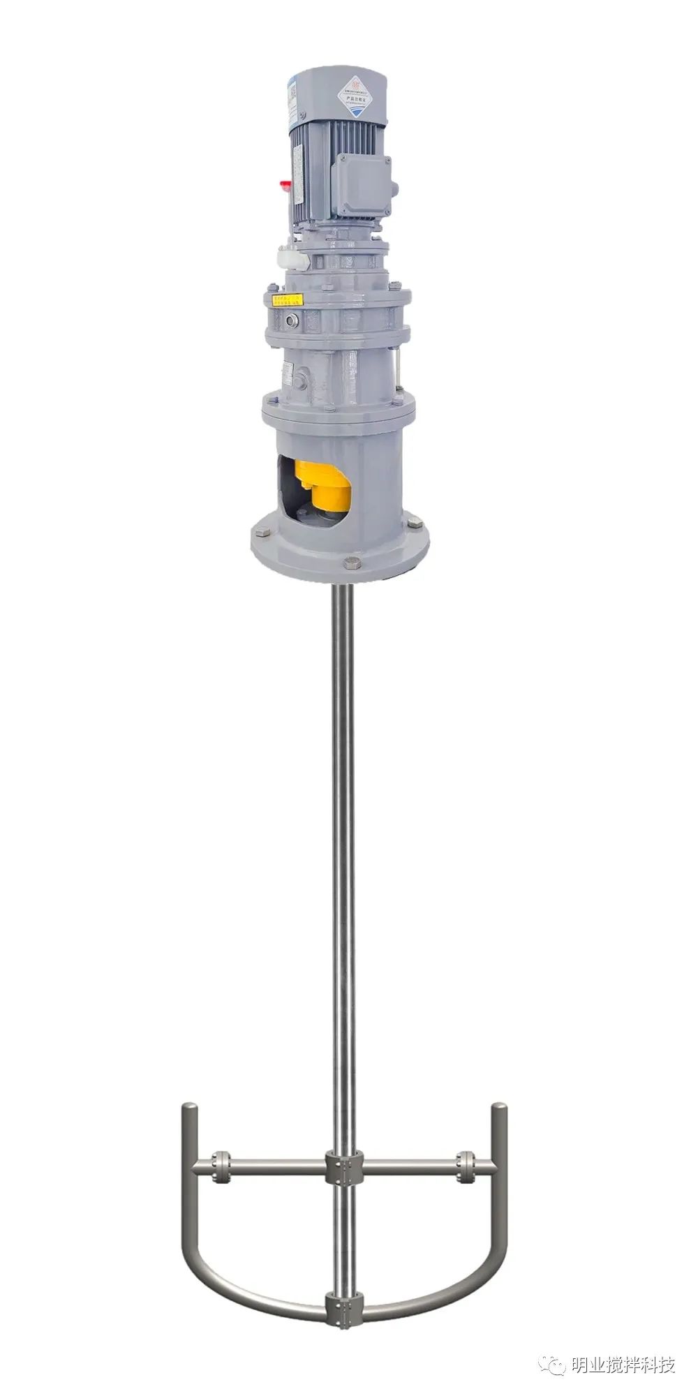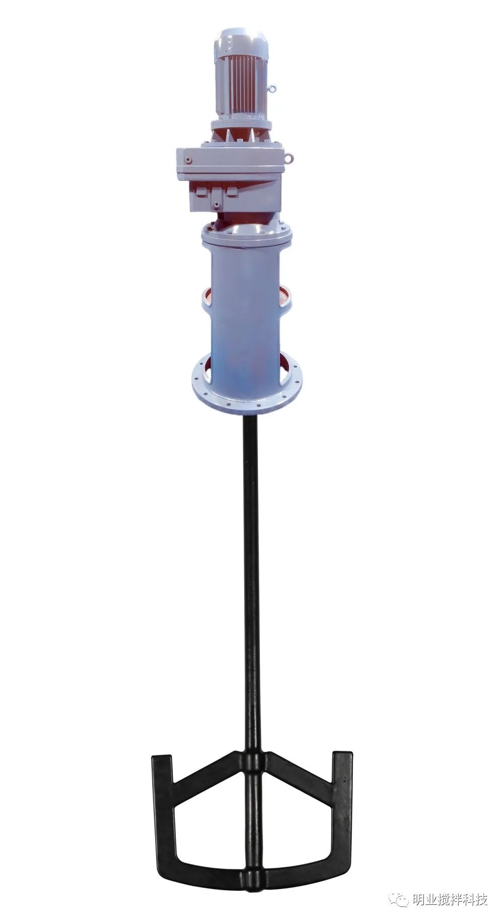 框式攪拌機(jī)一般視為槳式攪拌機(jī)的變形,結(jié)構(gòu)較為堅(jiān)固,攪動(dòng)量較大。為有利于進(jìn)行傳熱,其攪拌器與釜壁間隙較小,常用于傳熱、晶析操作以及高粘度液體、高濃度和沉降性淤漿的攪拌。